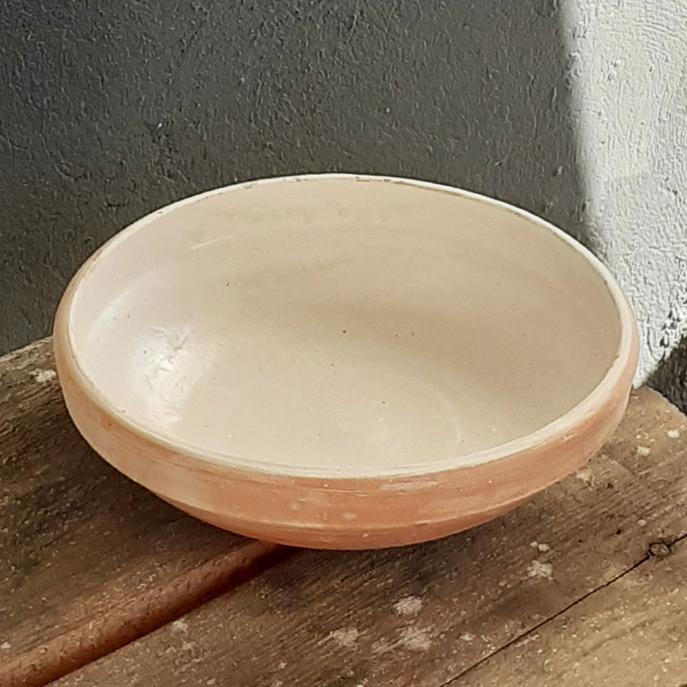 Bol din lut modelat pe roata olarului în Horezu, glazurată cu glazuri tradiționale.